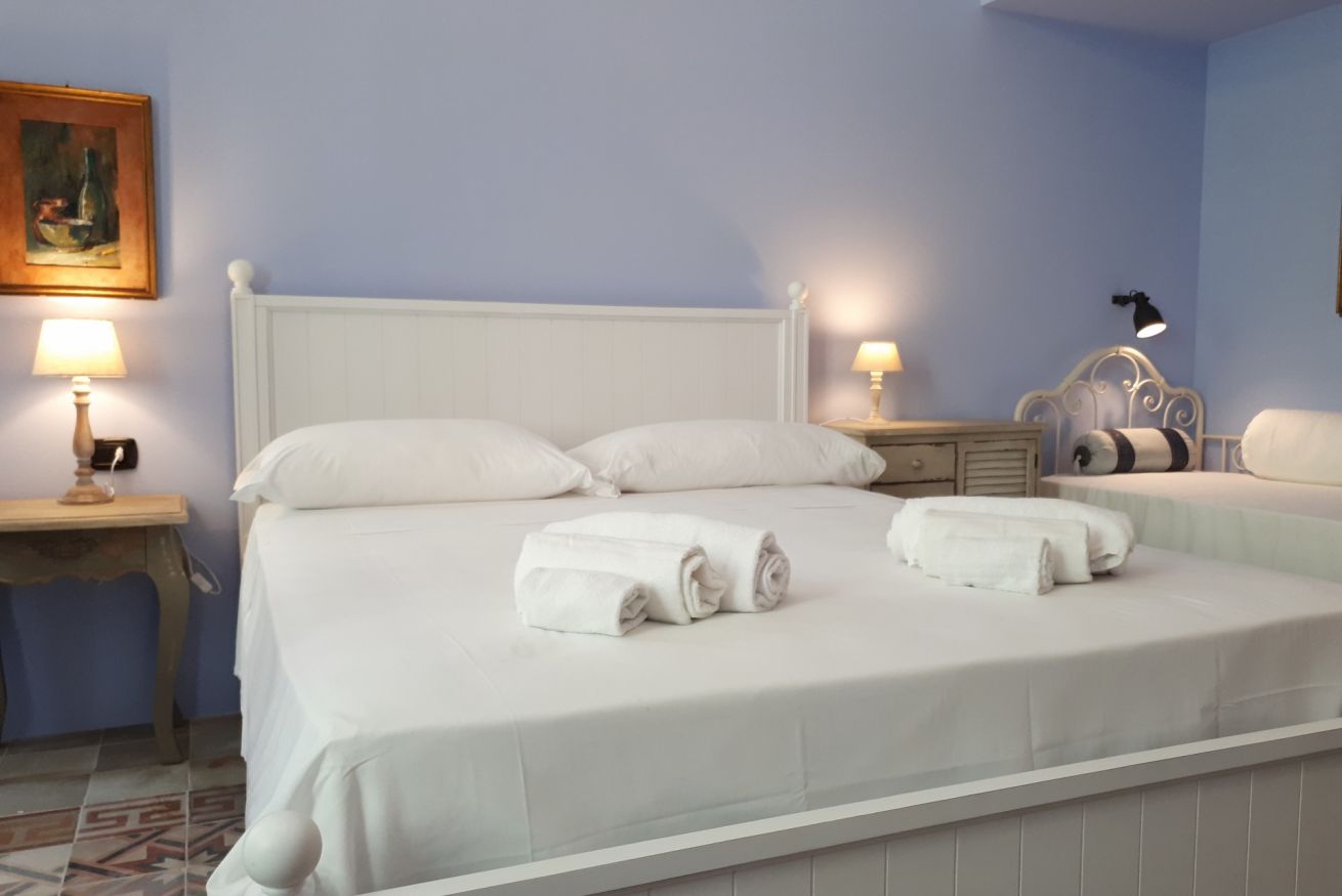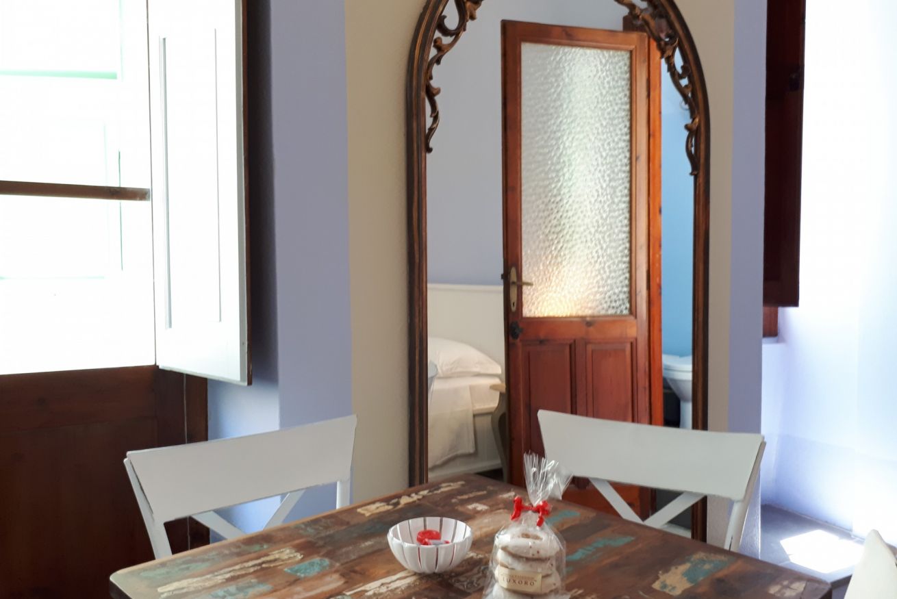 Angelica è una suite quadrupla appartenente a Casa Sofia. Localizzata al primo piano, è dotata di una comoda zona giorno divisa tra cucina e sala da pranzo comuni a servizio di quattro Suites ciascuna con bagno privato, aria condizionata, TV, Wi-fi, minibar, bollitore elettrico, tavolino e galaia.